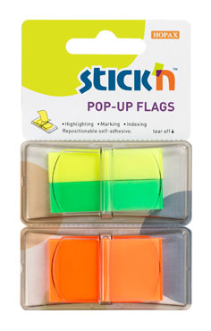 (арт. 21822793) Закладки Hopax 26005 POP-UP 2шт 45х12мм 80л(желтый зеленый) и 1шт 45х25мм 50л(оранжевый) из пластика