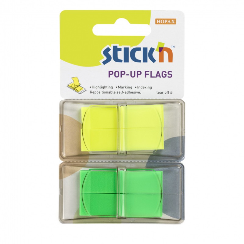 (арт. 21822795) Закладки Hopax 26007 POP-UP 2 цвета (желтый зеленый) 45х12мм 160л из пластика