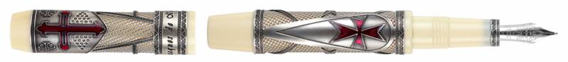 (арт. 21946543) Ручка перьевая Visconti Jaсques de Molay VS-761-52F смола цв слон кость, серебро, красн эмаль, перо 95% Pd. 23К, толщ F