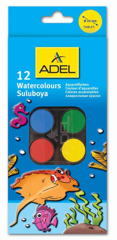 (арт. 21814477) Акварельные краски Adel 229-0933-000 24мм 12 цветов пластиковая коробка картон. суперобложка/европод