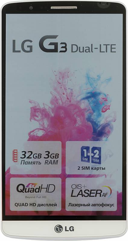 (арт. 21980607) Смартфон LG LG 856 белый моноблок 3G 4G 5.46" 1440x2560 Android 4.4 13Mpix WiFi BT GPS GSM900/1800 TouchSc MP3 32Gb FM A-GPS microSDXC max128Gb