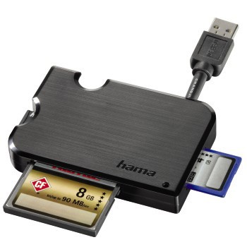 (арт. 21825325) Кардридер Hama H-114952 SD всех стандартов SuperSpeed 3в1 USB 3.0 поддерж SDXC/microSDXC/UDMA черн