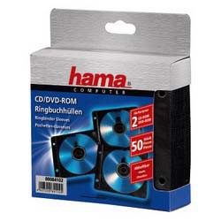 (арт. 21825916) Конверты Hama H-84102 для 2 CD/DVD с перфорацией для портмоне с кольцами 50 шт. черный/прозрачный