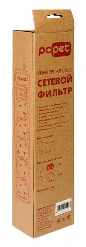 Сетевой фильтр PC Pet AP01006-5-GR 5м (5 розеток) серый PatrNumber/Артикул Производителя: AP01006-5-G, Брэнд: PC PET, Входная вилка, тип: EURO, Выходные розетки… подробнее