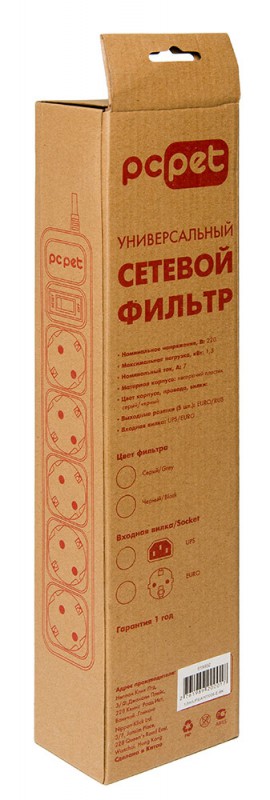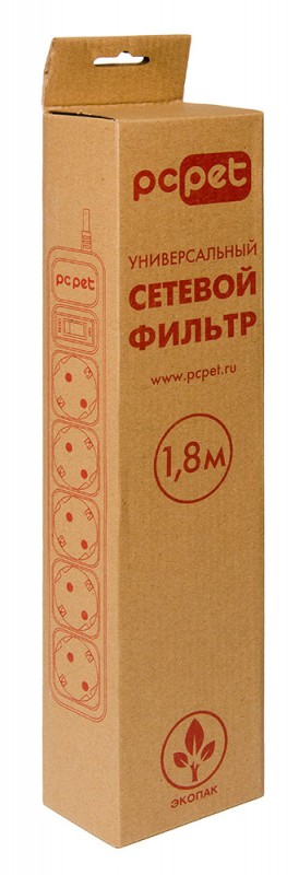 (арт. 21619888) Сетевой фильтр PC Pet AP01006-E-GR (UPS) 1.8м (5 розеток) серый