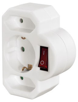 (арт. 21828087) Тройник Hama H-47756 с выключателем 1 "евророзетка"+2 розетки для бытовой техники "защита от детей"