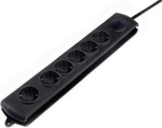 (арт. 21828113) Удлинитель Hama H-47829 сет. с выкл. и защитой от повыш.напр.6 р. 1.4 м 3х1.5 кв.мм черный
