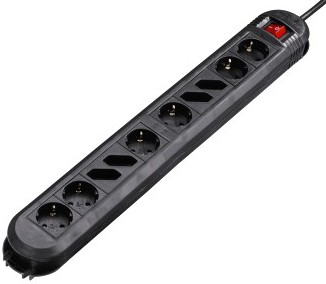 (арт. 21835023) Сетевой удлинитель Hama Colour 3м (10розеток) black с выключателем/"защита от детей" (H-108890)