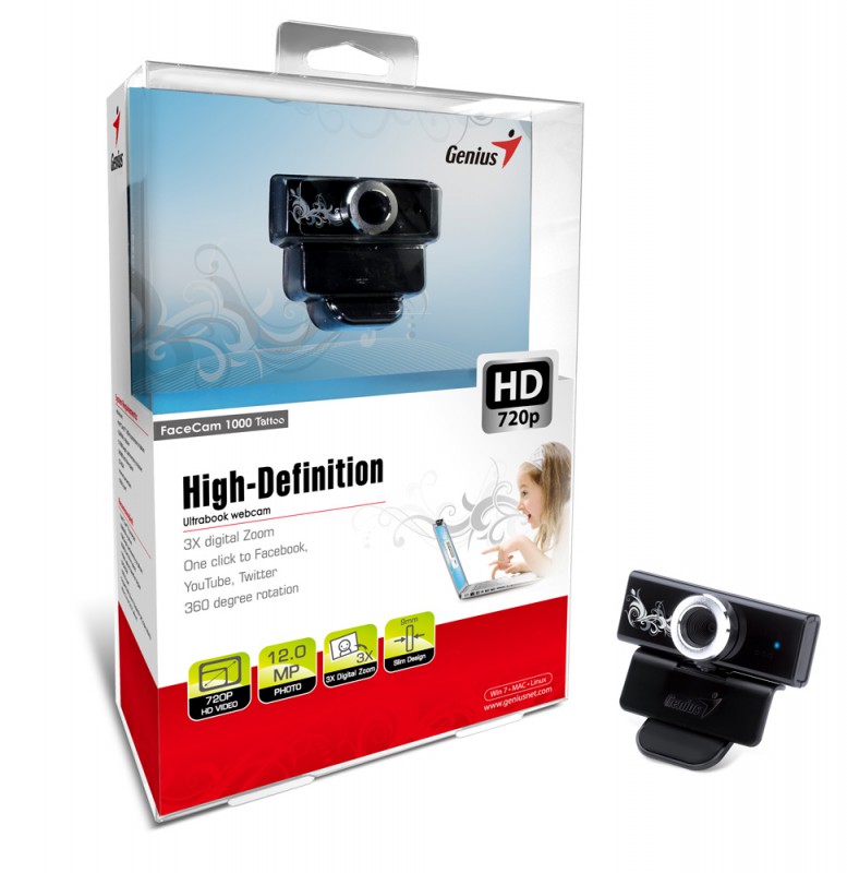 (арт. 21791528) Камера Web Genius G-Cam FaceCam 1000 Tatoo черный 8Mpix (1280x720) USB2.0