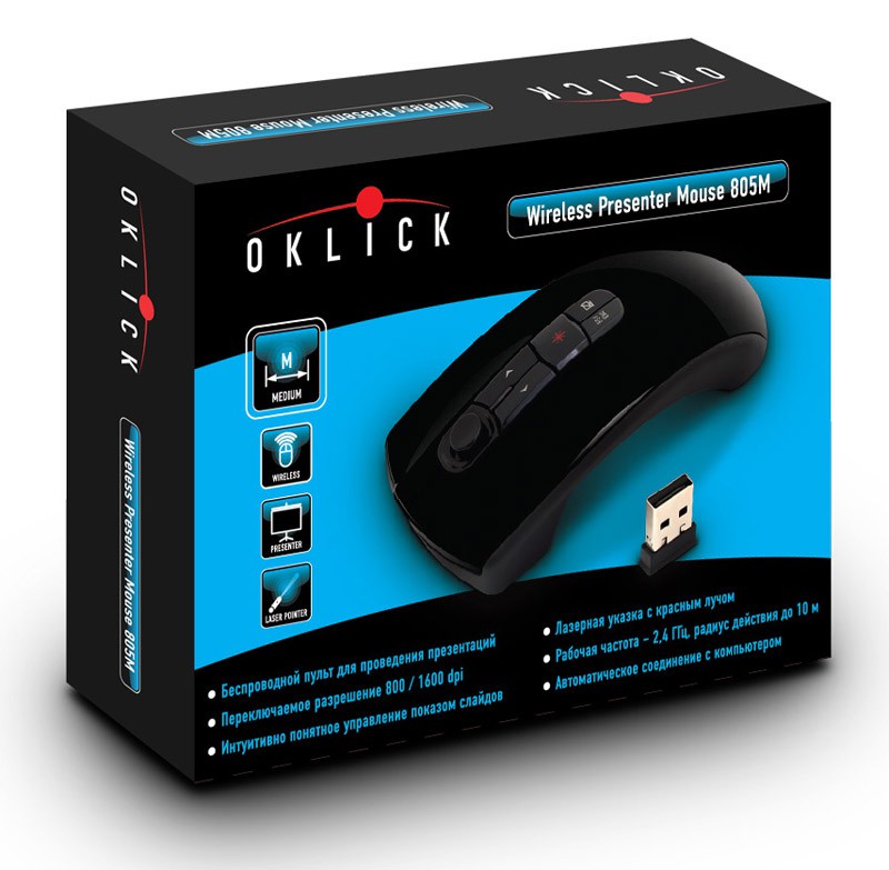 В интернет магазине JIN.SU Вы можете купить Мышь Oklick 805M Remote Presenter, 4-in-1, Cordless, Laser 8butt, 1600/800dpi по очень низкой цене, а так же заказать доставку или забрать товар самовывозом. Оплатить товар можно наличными курьеру, курьеру по банковской карте или банковской картой на сайте интернет-магазина. Более подробно о способах доставки и оплаты читайте в соответствующих разделах сайта.