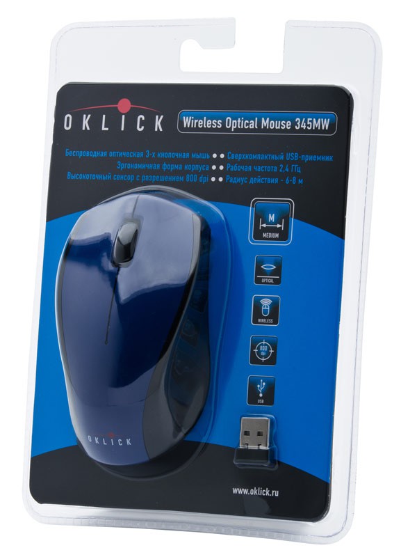 (арт. 21696270) Мышь Oklick 345MW Black/Blue Cordless Optical 800DPI 3Butt Nano receiver USB