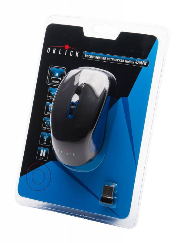 В интернет магазине JIN.SU Вы можете купить Мышь Oklick 425MW black/blue Wireless Nano 5butt (1000/1600DPI) USB по очень низкой цене, а так же заказать доставку или забрать товар самовывозом. Оплатить товар можно наличными курьеру, курьеру по банковской карте или банковской картой на сайте интернет-магазина. Более подробно о способах доставки и оплаты читайте в соответствующих разделах сайта.