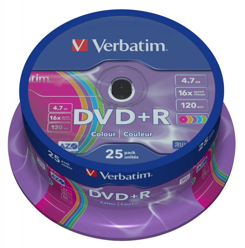 (арт. 21587862) Диск DVD+R Verbatim 4.7Gb 16x AZO colour surface Cake Box (25шт) 43733