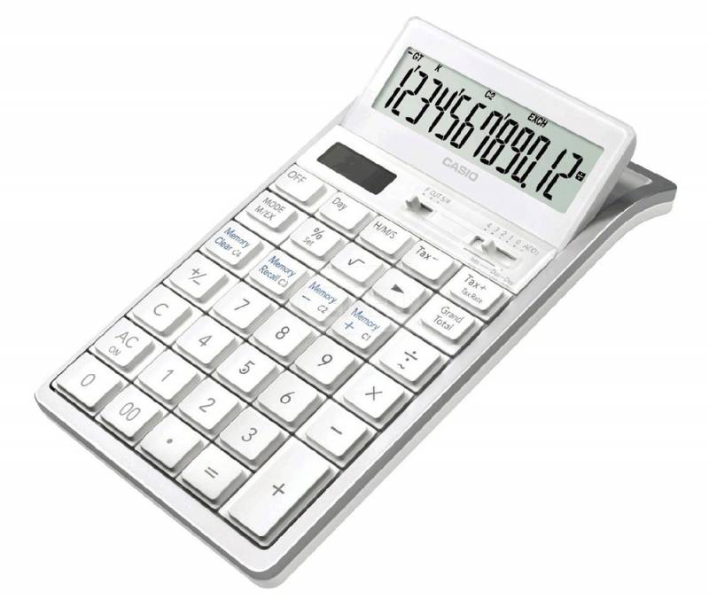(арт. 21811400) Калькулятор настольный Casio RT-7000-WE 12 разрядов двойное питание белый тонкий корпус