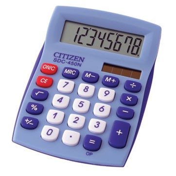 (арт. 21811431) Калькулятор настольный Citizen SDC-450NBLBP 8 разрядов голубой двойное питание процент корень