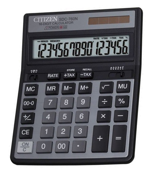 (арт. 21811439) Калькулятор настольный Citizen SDC-760N 16 разрядов черный двойное питание две памяти налог
