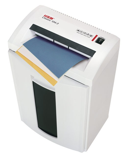 В интернет магазине JIN.SU Вы можете купить Шредер HSM Classic 104.3-3.9 (секр.2/Р-2)/лен5.8мм/18/33лтр/Уничт:скрепки, скобы, пл.карты по очень низкой цене, а так же заказать доставку или забрать товар самовывозом. Оплатить товар можно наличными курьеру, курьеру по банковской карте или банковской картой на сайте интернет-магазина. Более подробно о способах доставки и оплаты читайте в соответствующих разделах сайта.