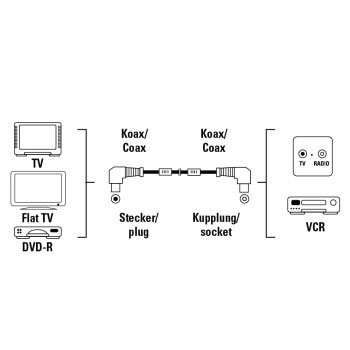 (арт. 21823219) Кабель Hama H-43559 антенный коаксиальный угловой штекер (m-f) 90 дБ 3.0 м фильтр 3зв белый