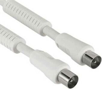 (арт. 21823230) Кабель Hama H-43570 антенный коаксиальный штекер (m-f) 90 дБ 5.0 м ферритовый фильтр 3зв белый