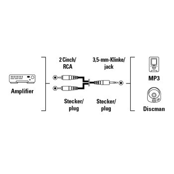 (арт. 21823658) Кабель Hama H-43413 2xRCA "тюльпан" - 3.5 мм Jack (m-m) стерео 5.0 м двойное экранирование черный