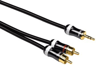 (арт. 21823836) Кабель Hama H-83028 2xRCA "тюльпан"(m)-3.5 мм Jack (m) стерео 3.0 м цельнометалл. штек. 5зв черн