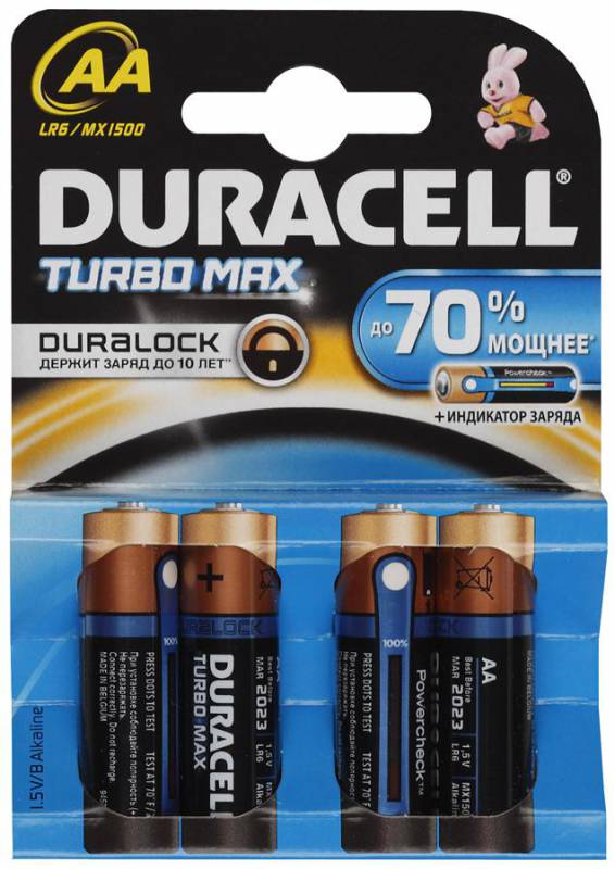 В интернет магазине JIN.SU Вы можете купить Батарея Duracell LR6-4BL Turbo AA 3+1 бесплатно по очень низкой цене, а так же заказать доставку или забрать товар самовывозом. Оплатить товар можно наличными курьеру, курьеру по банковской карте или банковской картой на сайте интернет-магазина. Более подробно о способах доставки и оплаты читайте в соответствующих разделах сайта.