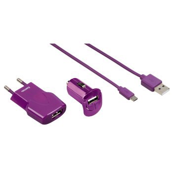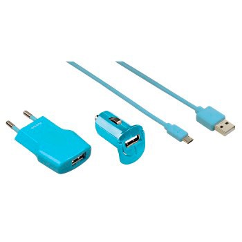 (арт. 21820804) Набор зарядных устройств USB Hama сетевое/автомобильное/кабель USB бирюзовый (H-102009)