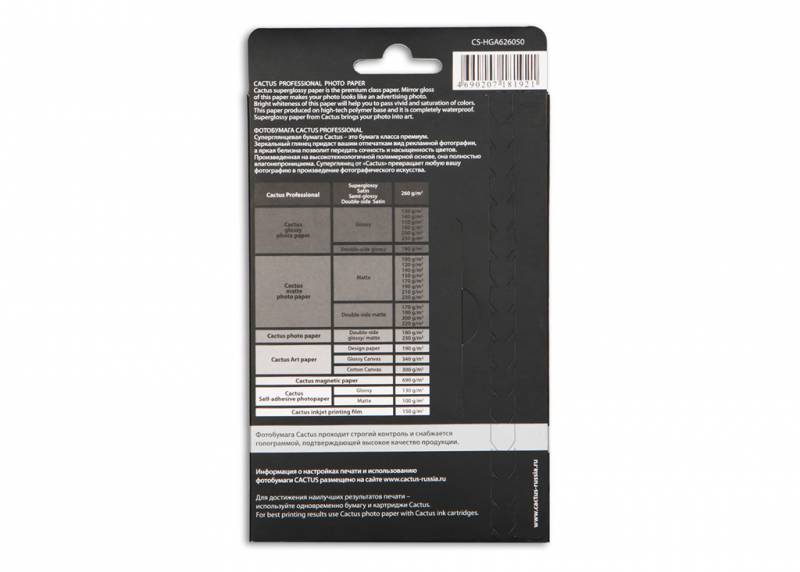 (арт. 21805841) Фотобумага Cactus CS-HGA626050 Professional суперглянцевая 10x15 260 г/м2 50 листов