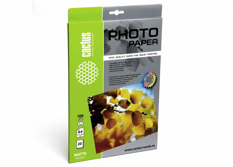 (арт. 21805844) Фотобумага Cactus CS-MA410020 матовая А4 100 г/м2 20 листов