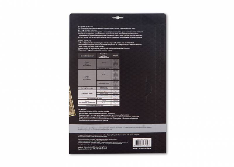 (арт. 21805879) Холст Cactus CS-СGA32601 A3/340г/м2/10л. глянцевая хлопок для струйной печати
