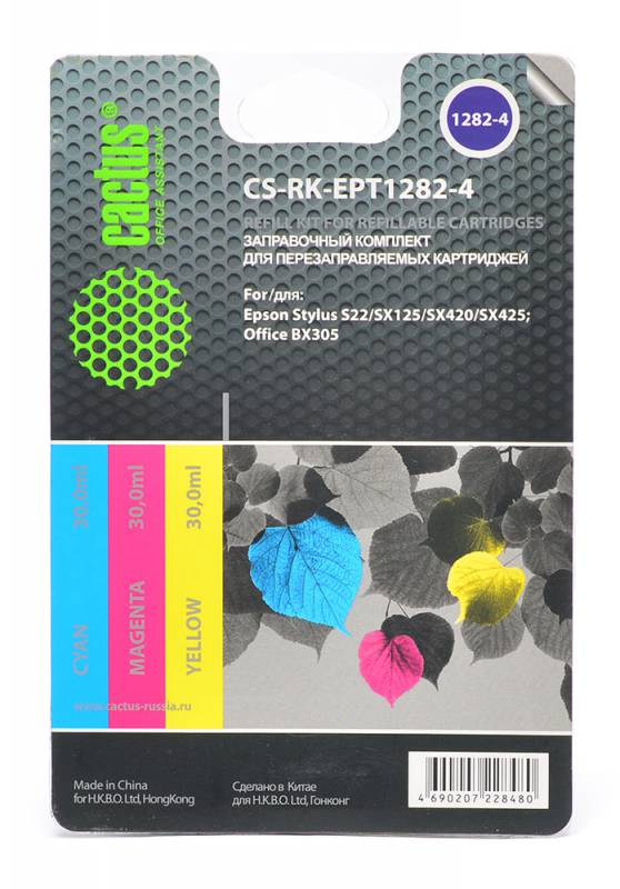 (арт. 21845702) Заправка для перезаправляемых картриджей CACTUS CS-RK-EPT1282-4 для Epson Stylus S22, цветная, 3x30