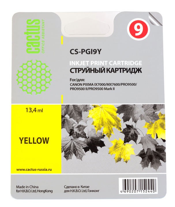 (арт. 21727336) Картридж Cactus CS-PGI9Y для Canon Pixma X7000/MX7600/PRO9500,желтый, 13.4мл
