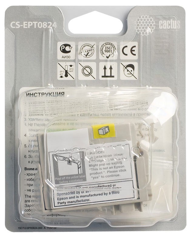 (арт. 21690132) Картридж Cactus CS-EPT0824 для Epson Stylus Photo R270/290/RX590, желтый, 460 стр., 11 мл.