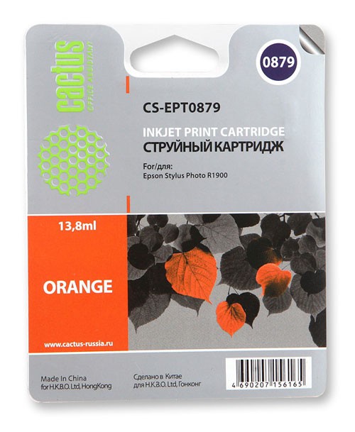 (арт. 21727377) Картридж Cactus CS-EPT0879 для Epson Stylus Photo R1900, оранжевый, 13.8мл