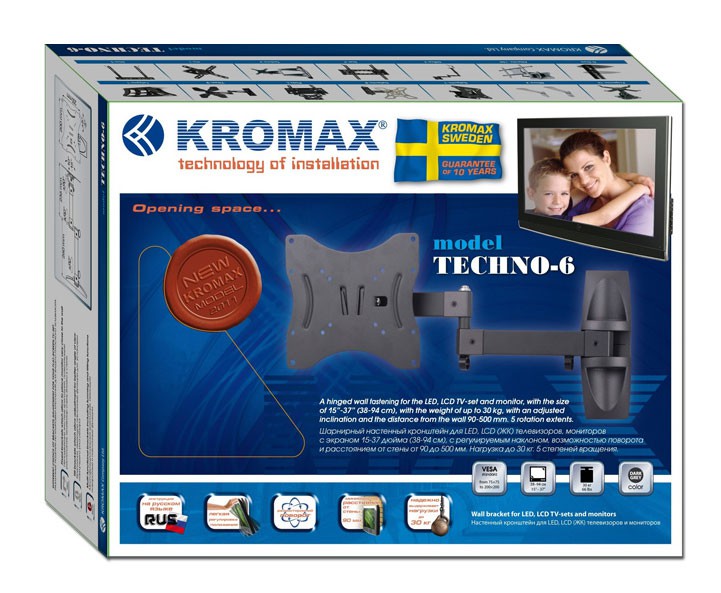 В интернет магазине JIN.SU Вы можете купить Кронштейн Kromax TECHNO-6 для ТВ 15"-37",настенный, 4 ст. наклон, до 30 кг, серый по очень низкой цене, а так же заказать доставку или забрать товар самовывозом. Оплатить товар можно наличными курьеру, курьеру по банковской карте или банковской картой на сайте интернет-магазина. Более подробно о способах доставки и оплаты читайте в соответствующих разделах сайта.