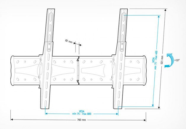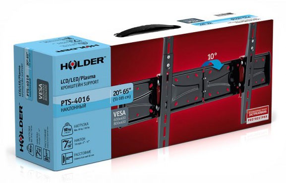 (арт. 21732477) Кронштейн Holder PTS-4016 черный глянец для 20-65" настенный, +3/-10° (до 90кг)